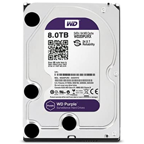 Жесткий диск WD PURPLE 8,0 ТБ для видеонаблюдения WD80PURX-78
