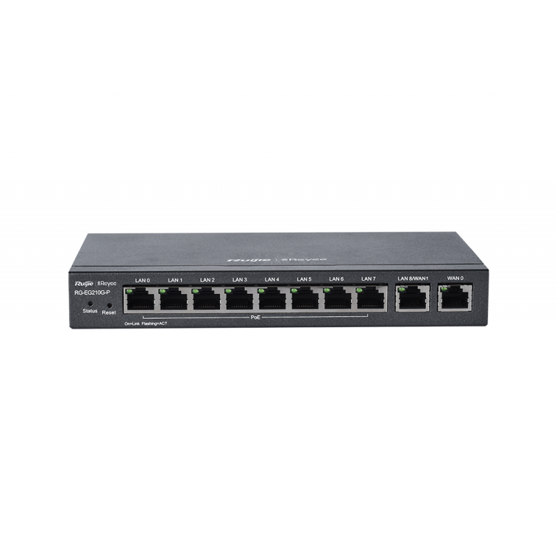 Маршрутизатор Reyee RG-EG210G-P - это высокопроизводительный маршрутизатор PoE, предназначенный для вилл и крупномасштабного развертывания умного дома, малого бизнеса в пищевой промышленности, офисов малых предприятий, небольших гостиниц и небольших отелей, предлагающий полосу пропускания 600 Мбит/с и поддерживающий 200 терминалов.