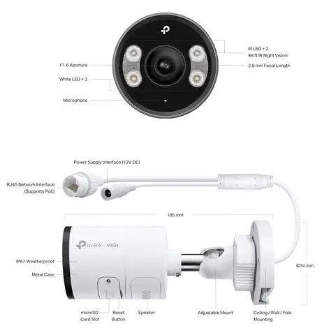 Освещение: IR/White LED, ночное видение до 30 м