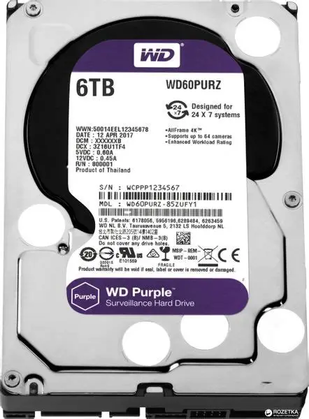Жесткий диск WD PURPLE 6,0 ТБ для видеонаблюдения Жесткий диск WD PURPLE 6,0 ТБ для видеонаблюдения
